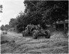 An Adams No. 550 motor grader shapes up the 6-inch clay topping that has been stabilized with one cubic