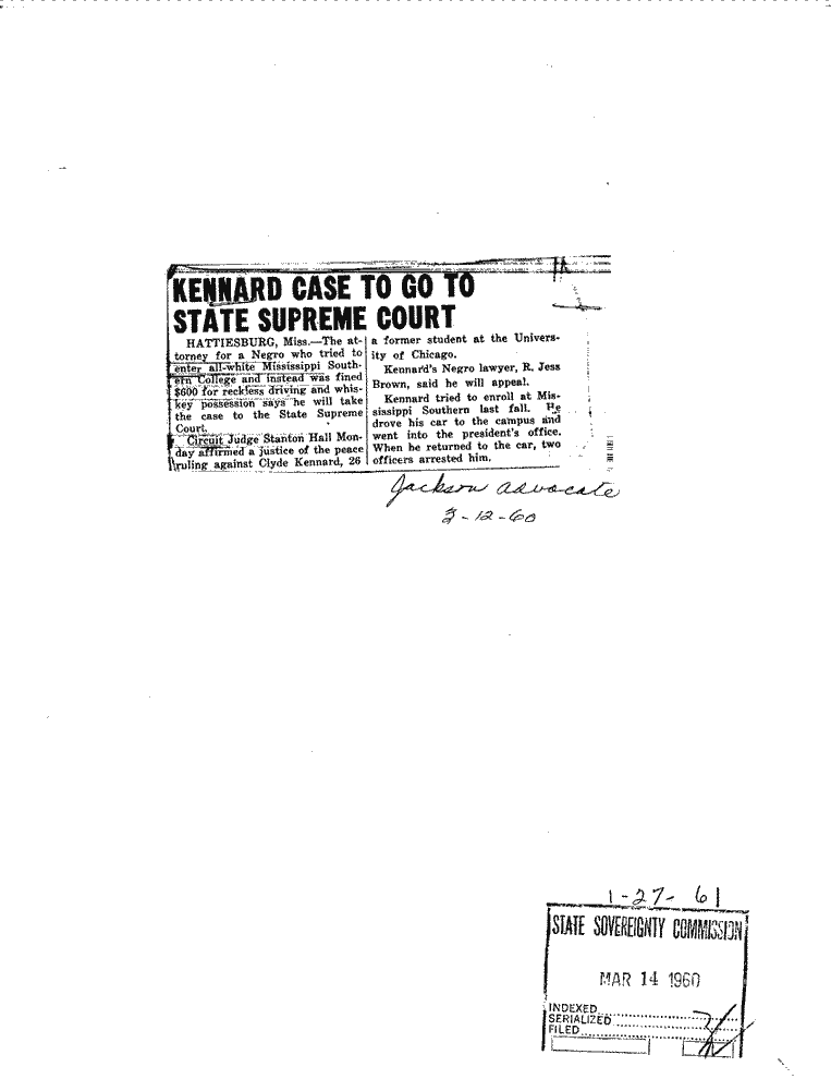 Sovereignty Commission Online Zoom Level: 50% 100% 120% 140% 160% 180% 200% Printer Friendly SCR ID # 1-27-0-65-1-1-1 Viewed on: January 9, 2026 There is 1 page in this document.Help | New Search
