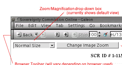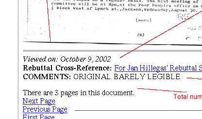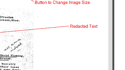 The following image illustrates how a document appears in the browser, including examples of court-ordered redactions (solid black boxes) versus original markings on the document.